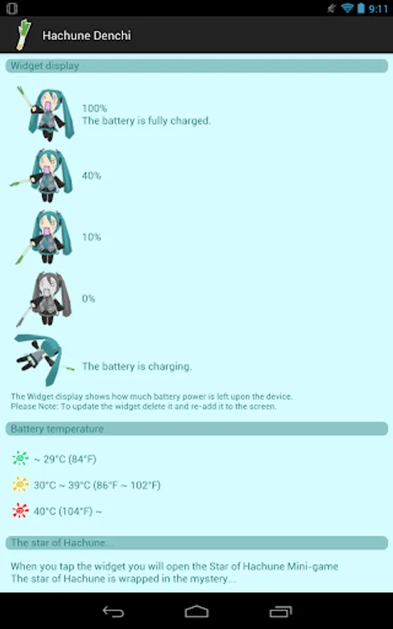 Hachune Miku is a widget that informs them of the amount of the battery left