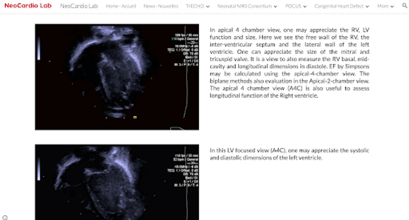 The NeoCardioLab is a research laboratory interested in clinical and epidemiological neonatal cardiovascular research, as well as education in neonatal hemodynamics. The principal investigator of the NeoCardioLab is Dr. Gabriel Altit from the Montreal Children’s Hospital (at McGill University). On the NeoCardioLab website, we have made available for the learners a whole array of content (clips, videos, presentations, reading material, articles, etc.) as a learning opportunity on echocardiography (2D and 3D), TnECHO (targeted neonatal echocardiography), point of care ultrasound (POCUS) and near infrared spectroscopy (NIRS). You will find on the website, our comprehensive “Atlas” for the expected normal complete neonatal echocardiography (with clips of various views and explanations), as well as clips for selected congenital heart defects. Our training modules are: on NIRS in the neonatal intensive care unit, as well as on POCUS/TnECHO. We offer modules on TnECHO (Targeted Neonatal Echocardiography; with clips outlining all the views and measurements, pulmonary hypertension, PDA, normative values, etc.), POCUS (as well as the example of the use of a hand-held device and how to obtain views) and Congenital Heart defects, as well as modules on Strain/Speckle Tracking and Near Infrared Spectroscopy. We also now host the Neonatal NIRS consortium page and all the recordings of their webinars.