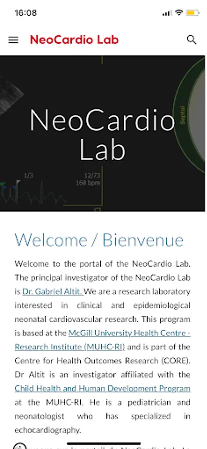 Please feel free to navigate the app and use it for training purposes and as a resource to complement your other learning materials. We are constantly updating the website and adding new content. You will also find information on the McGill University Neonatal Hemodynamics Clinical Research training program, if you are interested. Our research uses conventional and advanced echocardiography (speckle-tracking echocardiography on 2D and 3D acquisitions) to better understand the cardiovascular adaptation of newborns with various conditions (such as: prematurity, bronchopulmonary dysplasia, congenital heart defect, congenital diaphragmatic hernia, omphalocele and hypoxic ischemic encephalopathy). We also study cohorts of patients once they have graduated the neonatal intensive care unit (in neonatal follow-up, in the pediatric clinics, as well as during adulthood). Please feel free to contact us if you have questions or suggestions: info@neocardiolab.com. We also have Twitter (@CardioNeo) and Instagram (@NeoCardioLab).