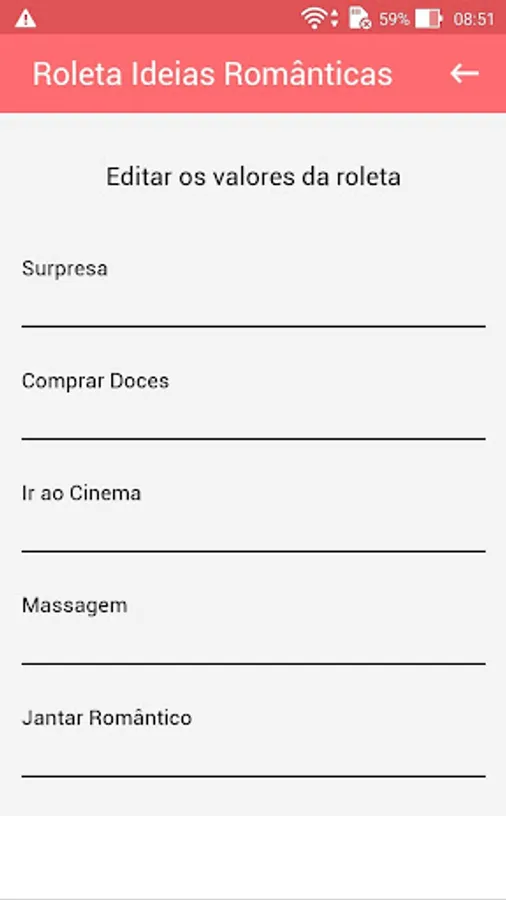 - Easy to use, just rotate the roulette and draw between several romantic ideas already pre-registered in the application