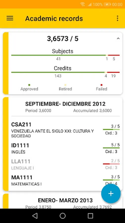 - Academic records: Obtain the academic records related to your usbid, you will have your final grade, subjects and credits approved, failed, withdrawn and completed, without the need for complicated calculations.