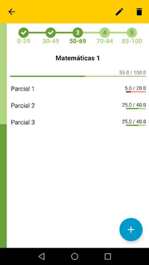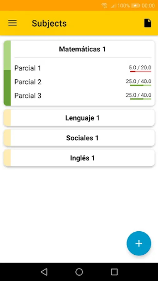 - Subjects: Now you can know what is the actual grade and how much is missing to reach a certain grade, without scratch a notebook and sheets than disappear.
