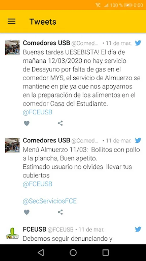- Tweets: You can be up to date of the most important information displayed by the official Twitter accounts of the Universidad SImón Bolívar.