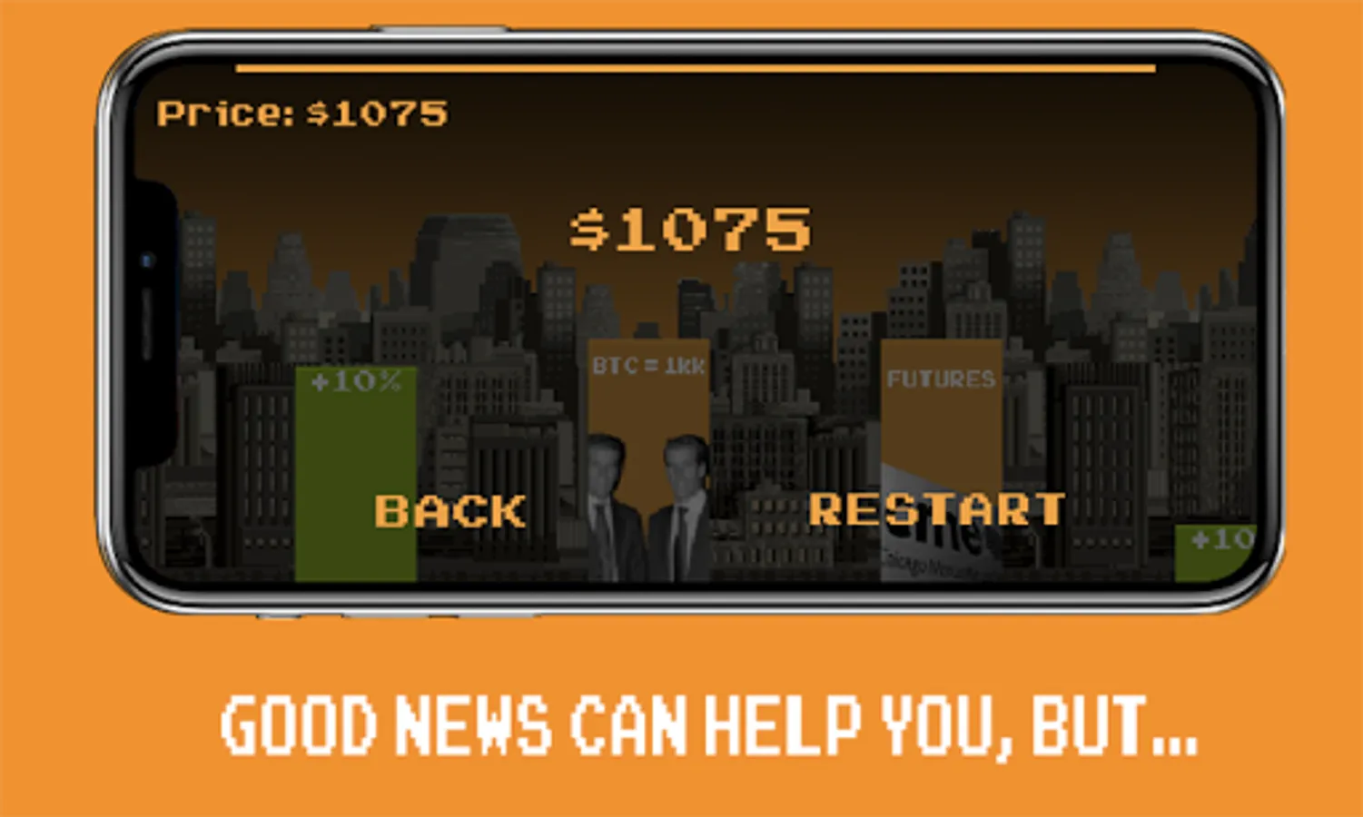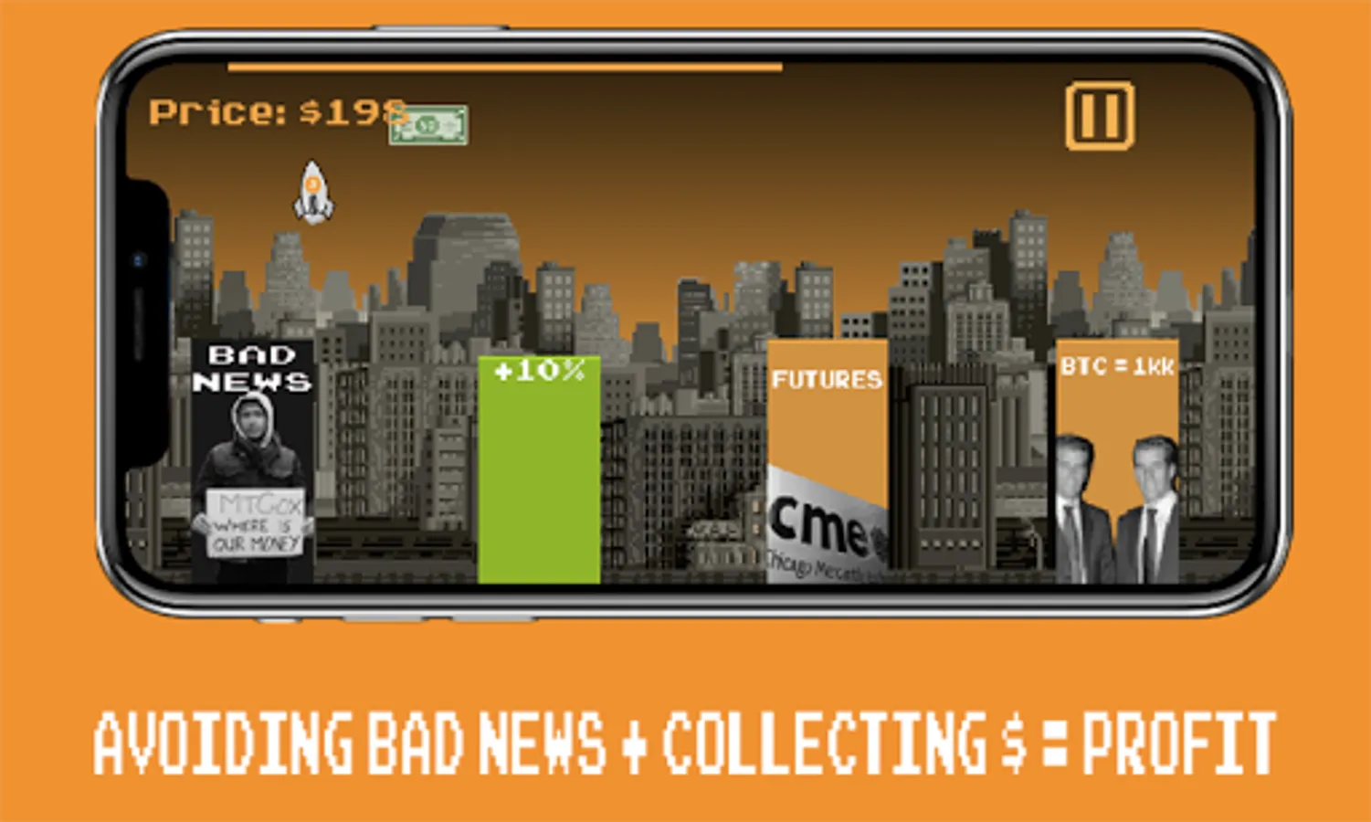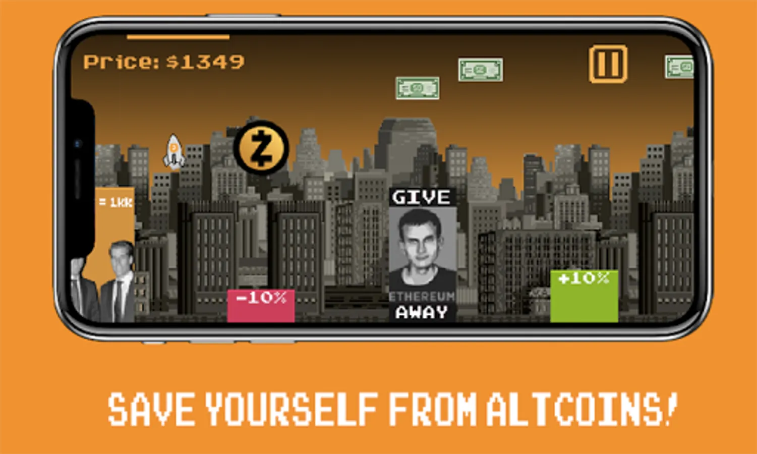 P.S.: This game is an attempt to show how the unstable cryptocurrency market is structured, very risky, where very little depends on the ordinary person. Even if you are doing well now, things can change very quickly.