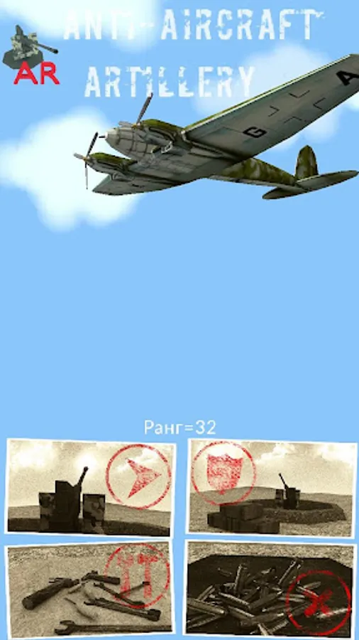 Anti Aircraft Artillery game Augmented Reality. Shooting with weapons on airplanes.