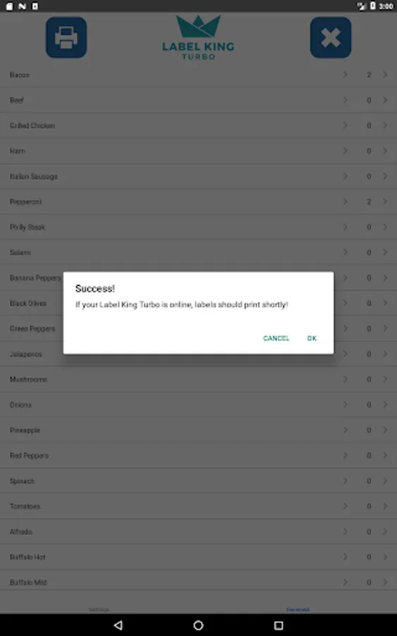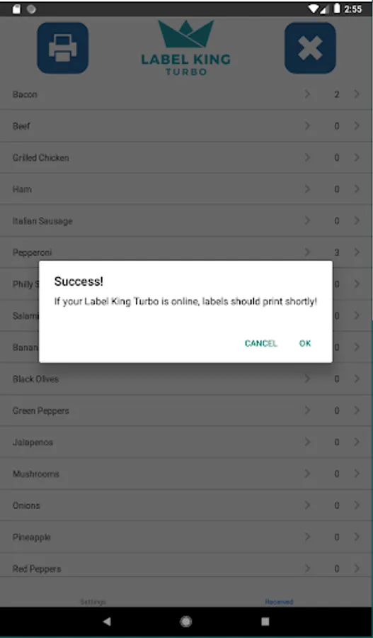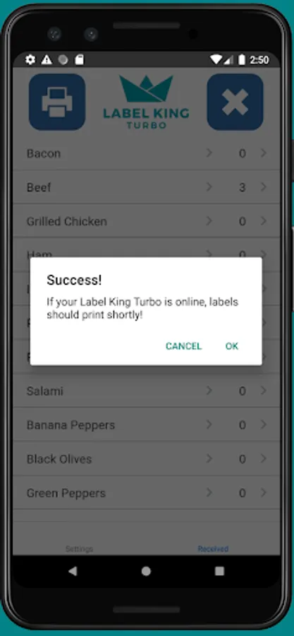 This is the companion app for Label King Turbo. It allows you to print received labels from your device. Requires a Label King Turbo system to operate.
