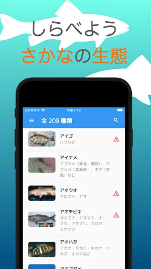 ●I created this app because I was fishing myself and wanted to know about the ecology of the fish. The main function is a fish encyclopedia.