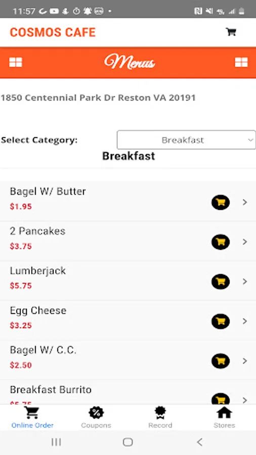 This app is created for Cosmos Cafe in Reston , VA to order food by online.