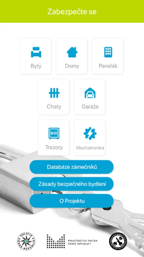Nowadays, new trends in burglary problems are emerging in the Czech Republic, as well as in surrounding neighboring countries. There is, therefore, a need to inform the public about new ways of protecting property, in particular effective technical and electronic security and its appropriate combination. The Czech police are trying to eliminate the causes of property crimes in their activities and, in cooperation with professional bodies, have created this mobile application, which will be a professional guide for citizens. The Guild of Mechanical Lock Systems of the Czech Republic is a professional association operating in the field of mechanical and electromechanical barriers. Members of the world's leading manufacturers of locksmiths, locksmiths, keymakers and technicians are ready to advise their citizens, with their experience and expertise. Advise you how to secure your property properly so it's efficient and practical, especially with the use of certified solutions. Running apps will enable citizens to get important information that will certainly help to improve your sense of security. It is always important to proceed preventively, not to the necessary consequences of burglary. The Ministry of the Interior welcomes another joint preventive project aimed at informing the public about the possibilities of protecting property and people.