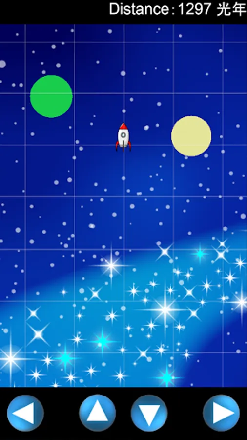 Universal gravity rocket is a mini-game that moves as far as possible while avoiding collision while receiving universal gravity from stars. Operate the rocket with the up / down / left / right buttons at the bottom of the screen. The game will be over if you hit a star or the rocket touches the screen frame. Go as far as you can and aim for number one in the world!