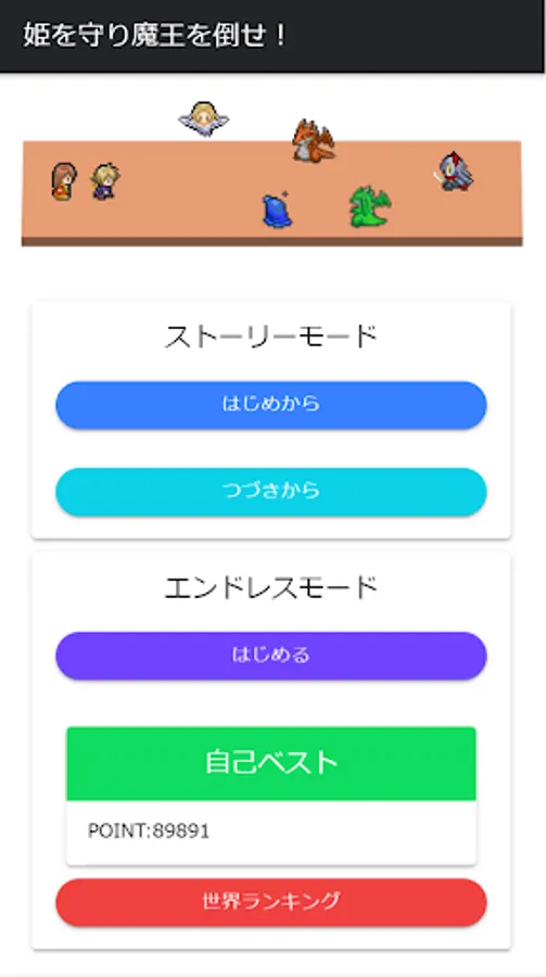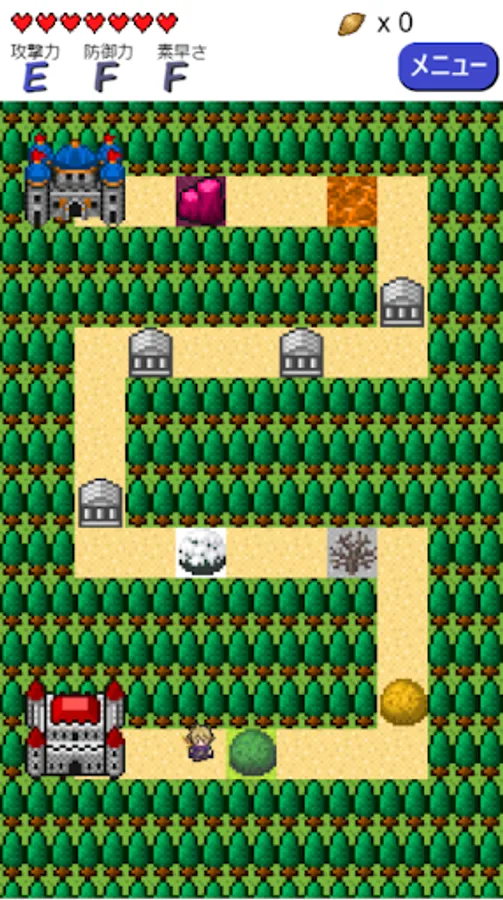 This game is a simple action RPG game with only tap operations. You will be forced to scroll while protecting the princess from the monsters. If you tap where you want to go, you will go there in the shortest distance, and if you approach the monster, it will automatically attack, so there is no need for difficult operations. In the story mode, you have to go through 10 stages to defeat the Demon King. Grass grows on each stage and you can get "Skill Seeds". Using the seeds of the skill, we will strengthen the attack power, defense power, quickness, and acquire special abilities. If you clear the story mode, you can challenge the endless mode with the character you raised. In the endless mode, points are calculated based on the distance you have advanced and the number of skill types you have acquired. In this mode you will aim for as many points as possible, and you will be able to rank online.