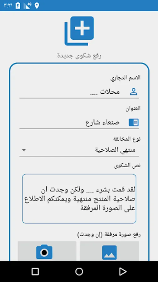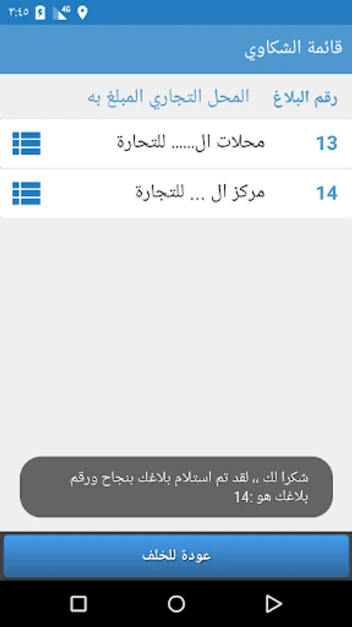 You can through this application to report a commercial violation with the identification of the type and the possibility of attaching a picture of the violation and specify the address directly as well as to see your reports and their cases.