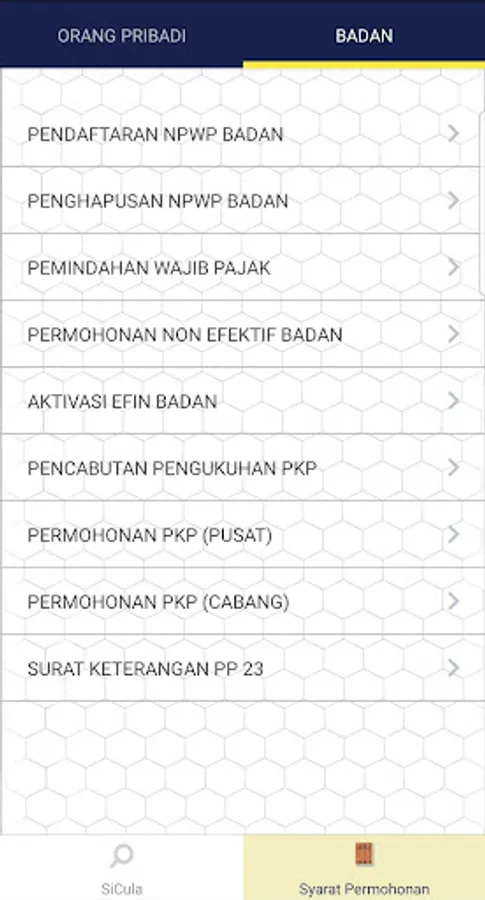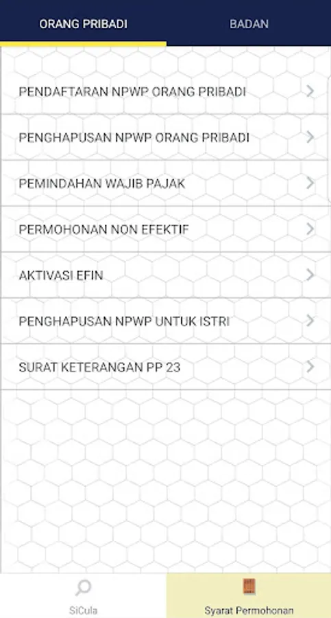 SiCula (Sistem Pencarian Produk Layanan) adalah aplikasi yang dapat memberikan informasi kepada Wajib Pajak mengenai status penyelesaian produk layanan yang diajukan oleh Wajib Pajak.