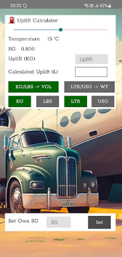 Calculates fuel uplift Litres (L) from kilograms (KG) and compensates the Specific Gravity (SG) for temperature. Also allows manual entry of custom SG’s, calculation of US GAL/LBS and vice versa.