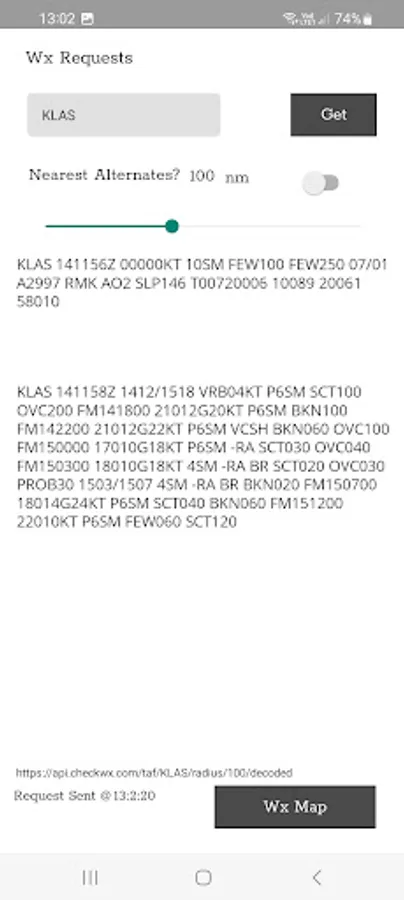 Download current METAR and TAF data, including nearest airports based on a radius calculation (50-250 nm). Colour coded responses returned for single requests. i.e. RED if date is not valid, GREEN for CAVOK conditions, BLUE for FG etc...