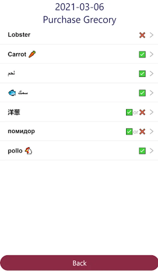 I2P is app for user to list out items to purchase. From items listed, user able to edit, delete and mark or unmark the items. Items also support multi language such as English, Arabic, Indonesia, Russia, Malay or Chinese. Also support an emoji icon.