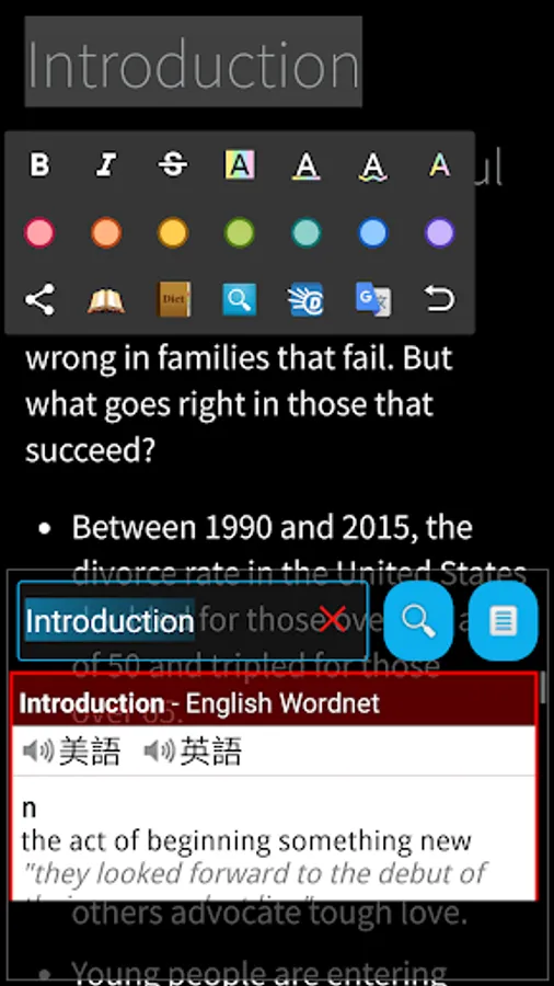 ⚫ Supports ColorDict, BlueDict, GoldenDict, Fora dictionary, Google Translate, Microsoft Translator and all other apps who list themselves to the text selection menu.