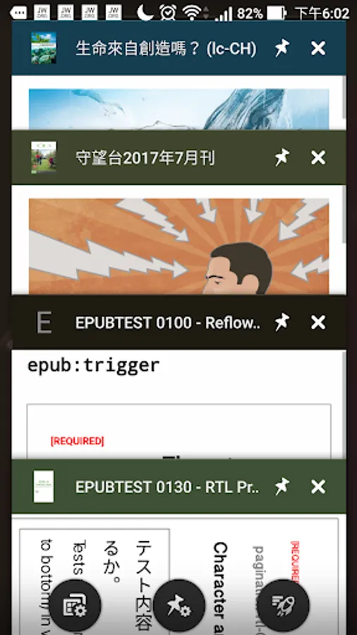 ⚫ Open multiple books simultaneously as if they are different apps. You can switch between opened books and the book list with the "recent apps" button of your device.