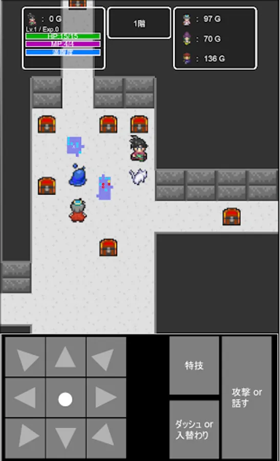 It is divided into 10 dungeons in total, and there are many treasures in each dungeon. Three rivals aiming for the treasure. Compete with four people including you. Furthermore, on each floor, you have to get money from your rivals depending on how you reach the stairs, and you have to give money to your rivals. Earn goals and increase your money.