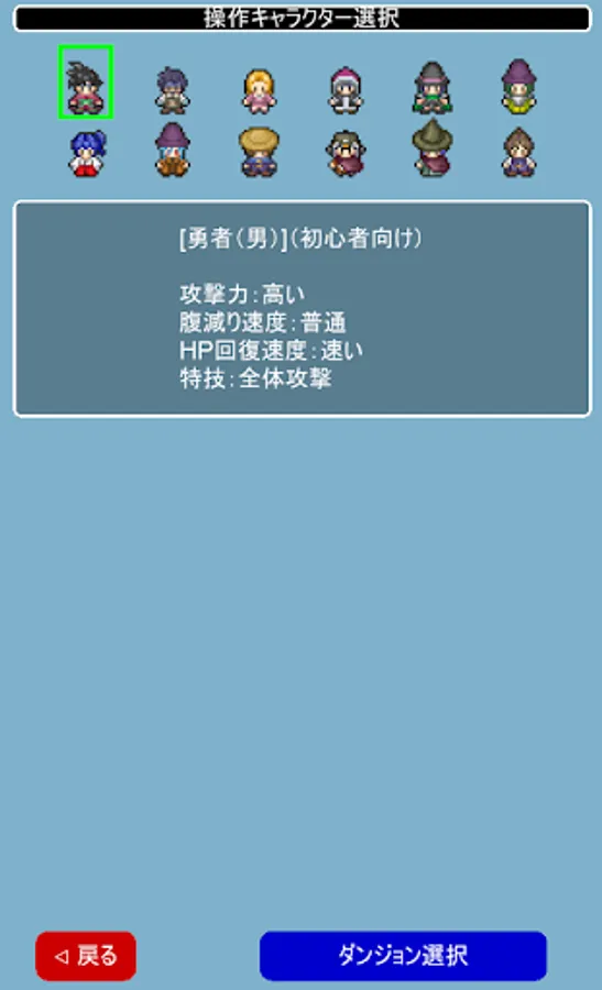 Difficult explanation is unnecessary. It is a simple roguelike game. The operation character can be selected from 12. There are 10 simple dungeons below.