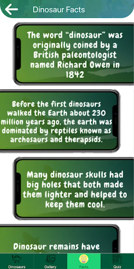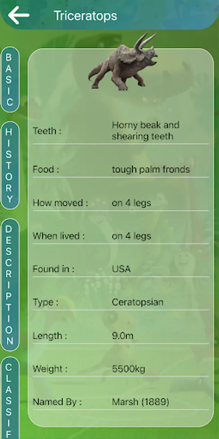 Dinopedia is a fun app for to learn about various species of dinosaurs and cool features about them.