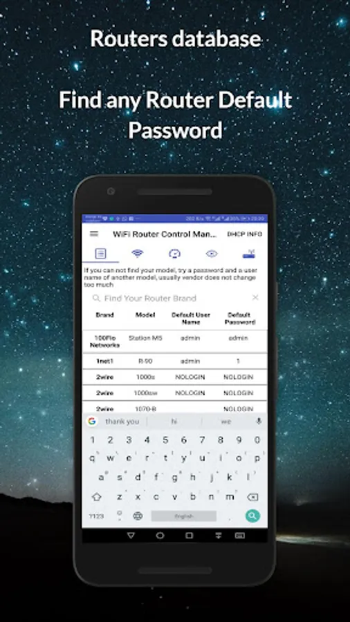 2-*** Router Default Passwords:*** If you don’t know your WiFi router setup page default password, the application contains a full database of any modem router brand and model, you will search for your router model and login in the router setup page.