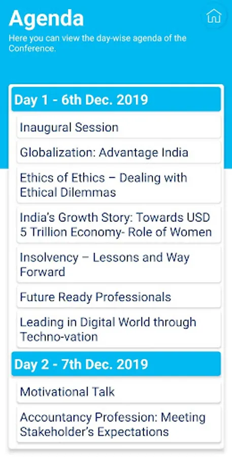 This is the official App for "ICAI International Conference 2019 - Accountancy Profession: Catalyzing Reforms, Creating Values" to be held on 6th & 7th December, 2019 at Jamshed Bhabha Theater, NCPA, Nariman Point, Mumbai.