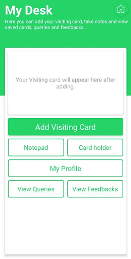 • My Desk - This feature enables you to add your visiting card for the "Networking" menu, view your Profile, Notepad, Card holder and view Queries & Feedbacks.