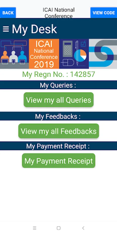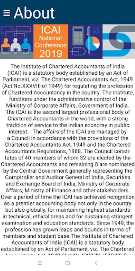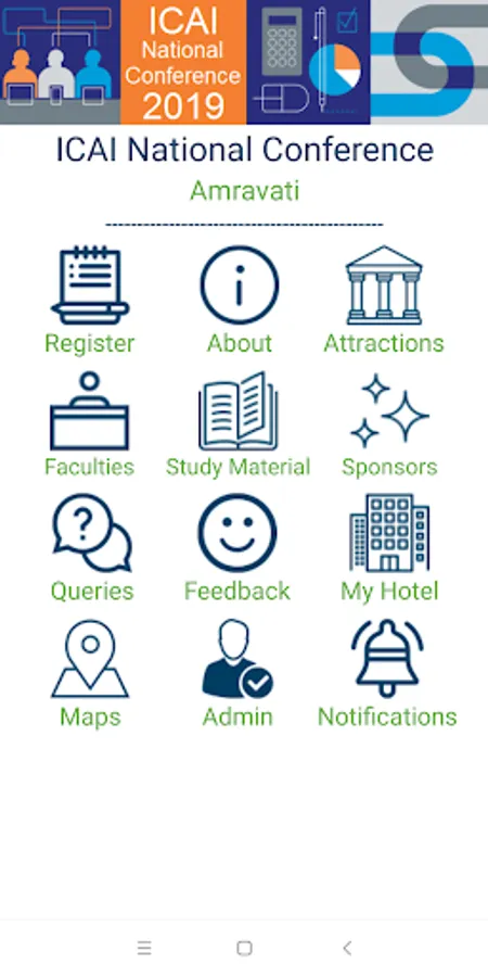 This Android Mobile Application is developed to ease the process of registration and payments, information about faculties and schedule, before/real-time availability of conference study materials, ease of question-answer sessions, conference updates and for providing other services to delegates intending to participate in this maiden National Conference of Chartered Accountants being hosted by Amravati CA Branch, on 3rd and 4th August, 2019 at Sant Dyaneshwar Sanskrutik Bhawan, Amravati.