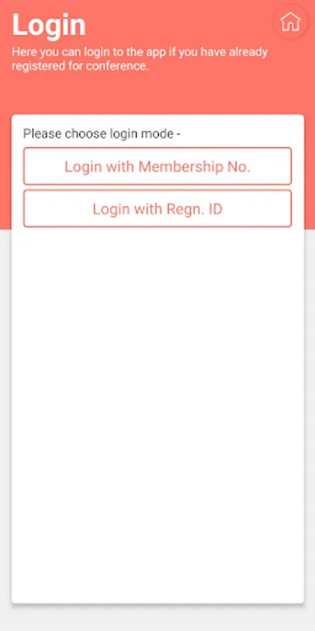 • Login - This feature enables you to Login into the app. You will need to enter either your Membership No., or your Registration ID. And then select your food choice, then you will be logged in.