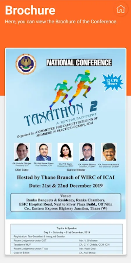 This is the official App for "Taxathon 2 - National Conference on Capacity Building Measures of Practitioners" to be held on 21st & 22nd December, 2019 at Ranka Banquets & Residency, Ranka Chambers, Thane.
