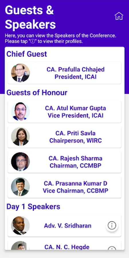 • Guests & Speakers - This feature enables you to view the Distinguished Guests & Eminent Speakers of the Conference.