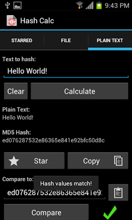 Hash Calc is a tool for computing checksums of files and texts. After computation, the calculated hash values can be compared against other hashes for verifying data integrity.
