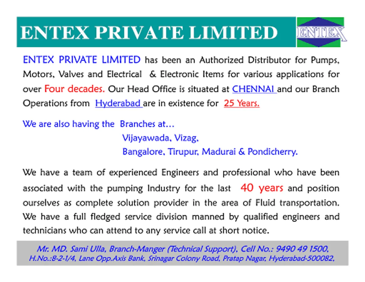 ENTEX has been in the market for more than two decades dealing with PUMPS & MOTORS of