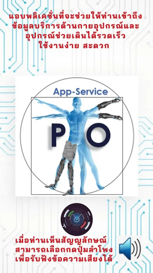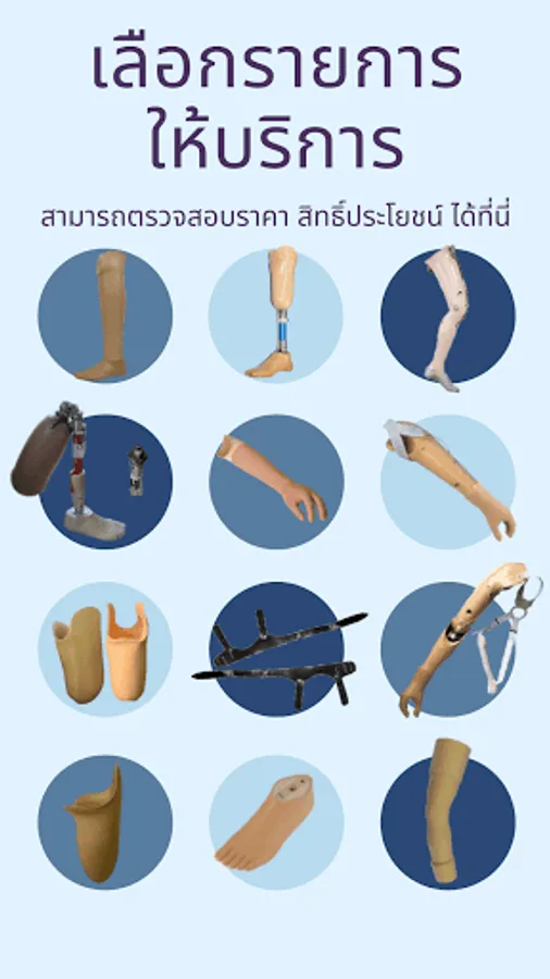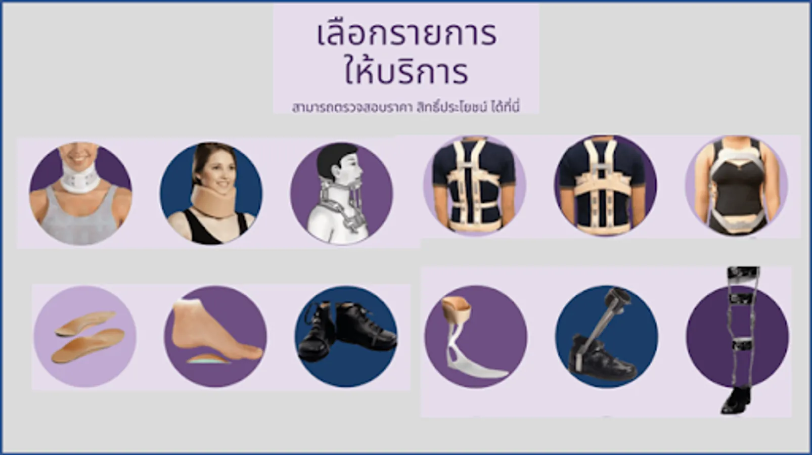 เป็นแอปพลิเคชั่นทางการแพทย์ที่ได้รวบรวมข้อมูลด้านกายอุปกรณ์ จุดประสงค์เพื่อให้ผู้ใช้บริการเข้าถึงข้อมูลงานกายอุปกรณ์เสริมและกายอุปกรณ์เทียมและข้อมูลความรู้เพื่อนำไปฝึกปฏิบัติดูแลรักษาได้ด้วยตัวเอง เพื่อความสะดวกในการใช้งานแอปพลิเคชั่นนี้ได้เพิ่มฟังชั่นการใช้งานรูปแบบเสียง เพียงกดปุ่มลำโพงเพื่อการใช้งาน