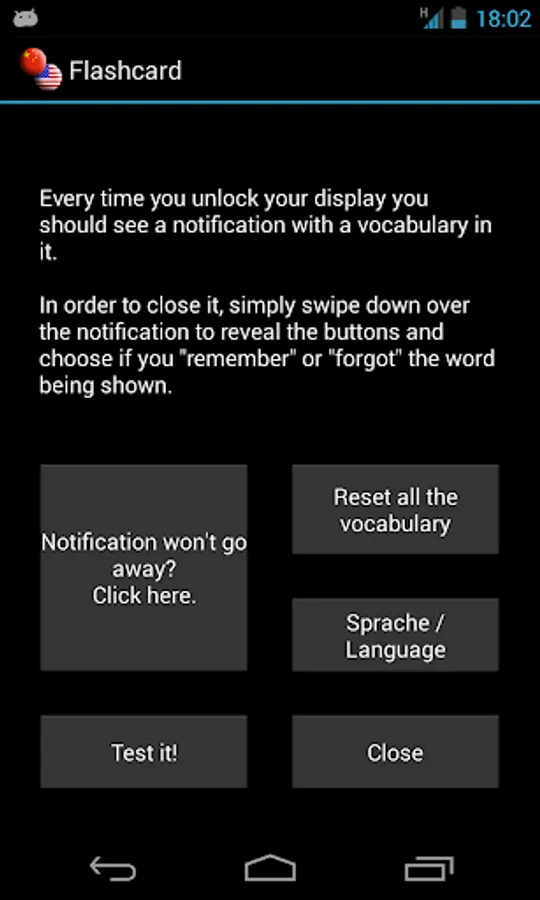 Every time you unlock your display a Chinese word will pop up in your notifications. As a recent study pointed out that every user unlocks the display about 60 times - that's going to be about 60 vocabularies you might learn a day.