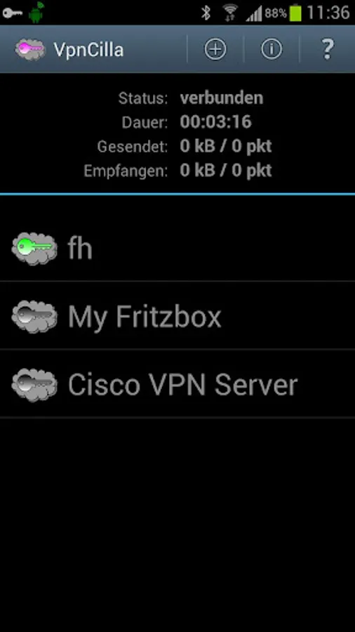 - VpnCilla can't handle phase 1 rekeying initiated by the VPN server. On Fritzboxes this will occure after 1h connection time whereas on Cisco VPN servers the rekeying interval is configurable and by default after 8h. Typically the session stalls for 2-3 minutes until VpnCilla initiates a reconnect.