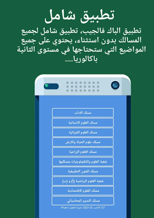 The baccalaureate in the pocket is an educational application for the benefit of students of the second baccalaureate level in Morocco in order to prepare well or persevere in studying. The application contains all the topics that students need at the second baccalaureate level: