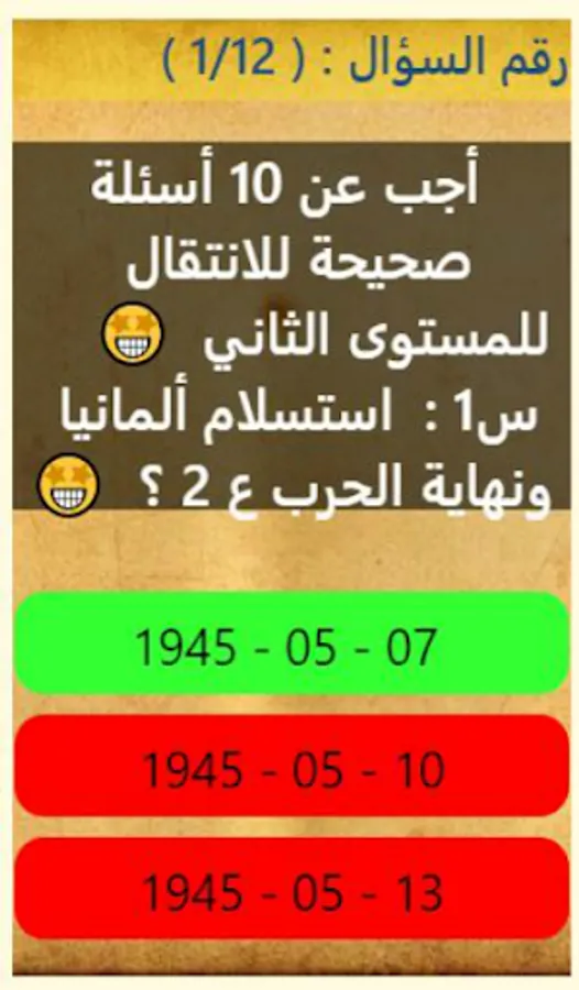 Helps you discover your level of memorizing the dates of the most important events