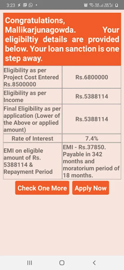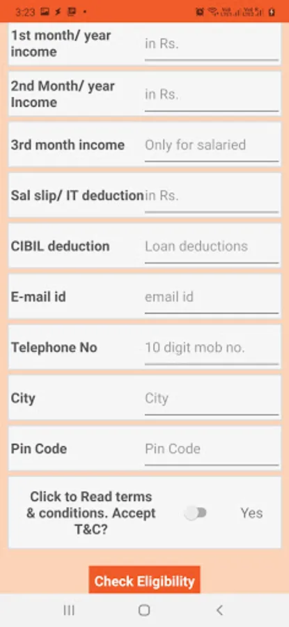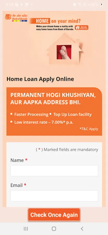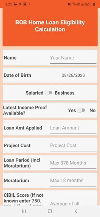 BOB Home Loan Eligibility Calc Screenshots