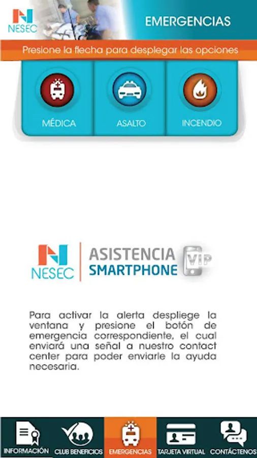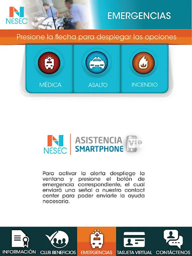 NESEC offers our select customers the new "Smartphone VIP Assistance" application, which provides medical emergency, assault and fire service by pressing the button of the requested emergency.