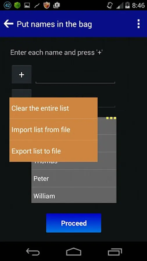 The list of names can also be generated in any text editor of your choice and saved in a "txt" file, then imported into the app.