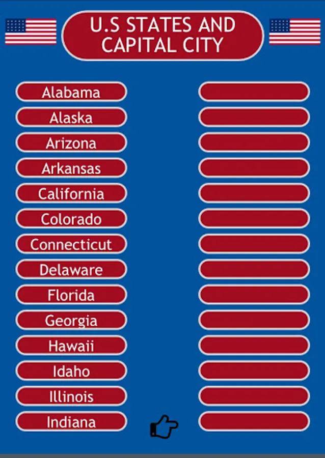 The purpose of this App is to help my friends in America to lean U.S States and Capital City in a fun, easy and independent way. The App is created in such a way that the user can quiz him or herself. Thank you for sharing this App.