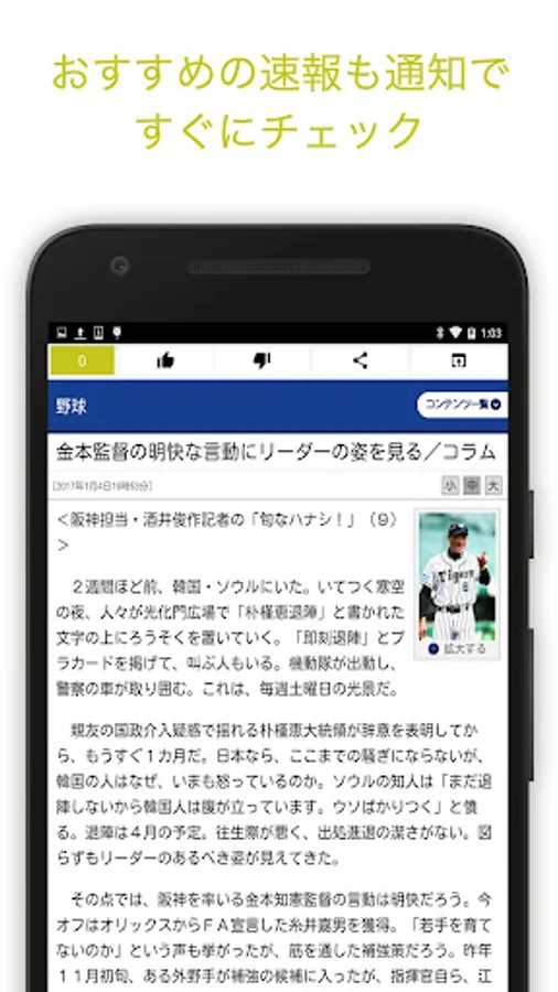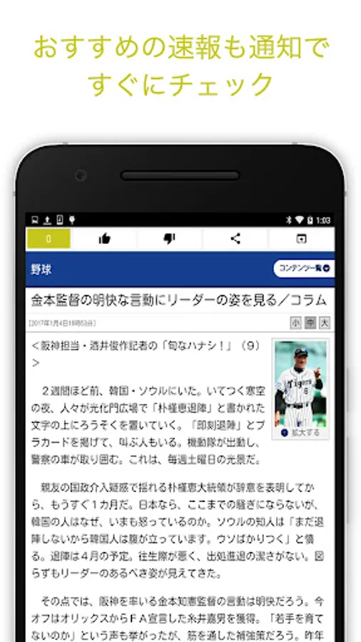 試合時間30分前の通知や、朝昼夜にわけた注目のプロ野球ニュース通知を受けることもできます。