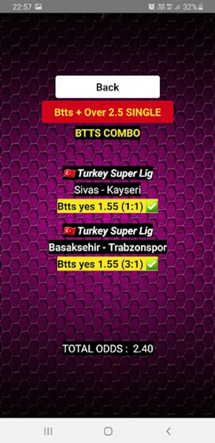 "Combo Betting Predictions 2+" offers a user-friendly interface that allows you to easily access the combo and maxbet predictions. Each prediction comes with detailed analysis and insights, empowering you to understand the reasoning behind our selections and make informed betting decisions.