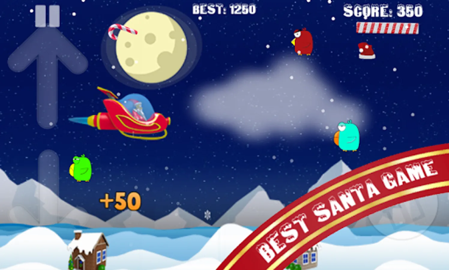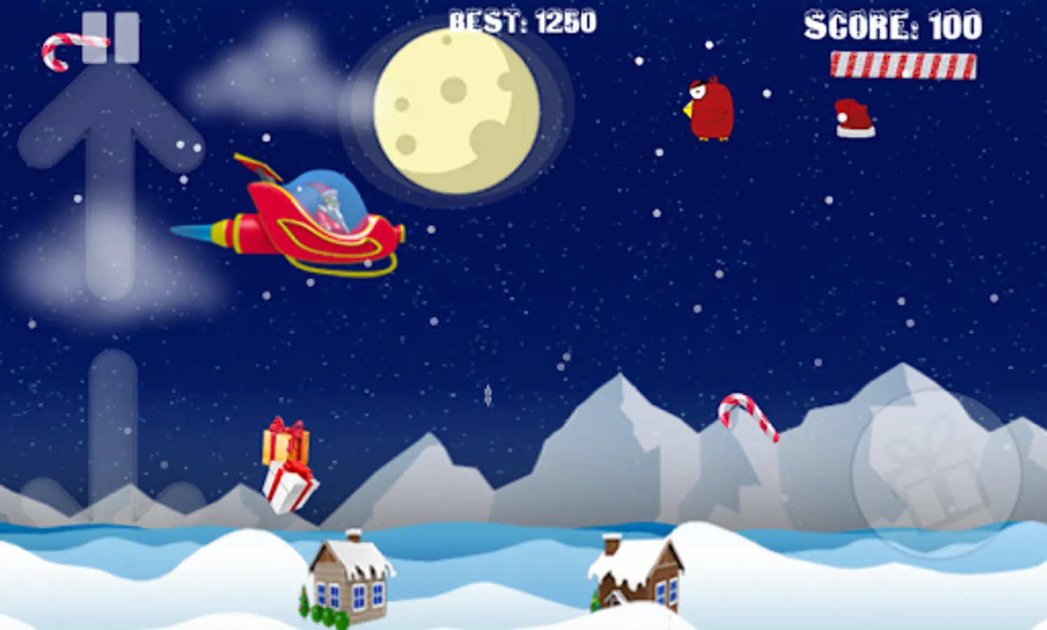 Santa 1st time in Google Play store! This year Santas reindeers are sick and can't help Santa to deliver all the gifts in time! All the reindeers will stay at Santas home. Luckily the elves in the workshop have been working on a new ultra modern sleigh! fly through town delivering gifts as Santa in his brand new flying sleigh, aim at the houses and try to score as much as you can! Don't forget to collect all the Candy canes