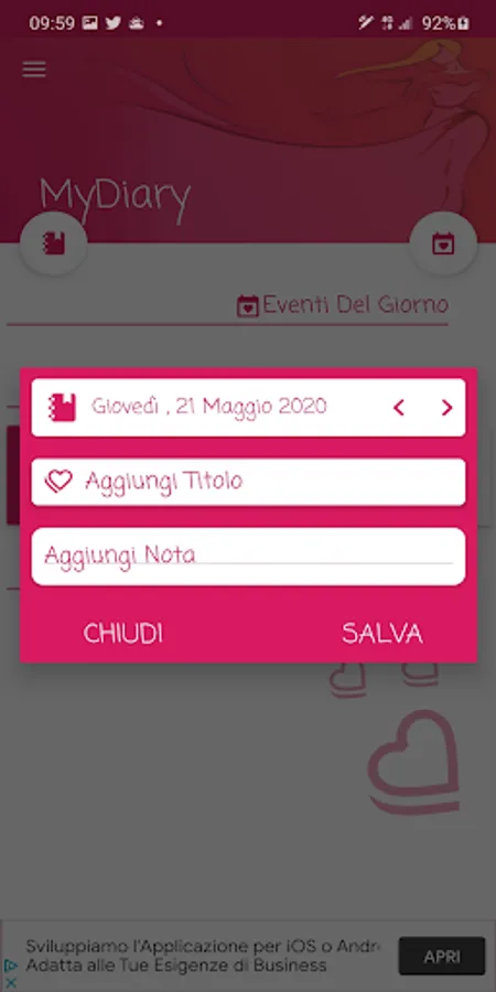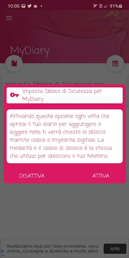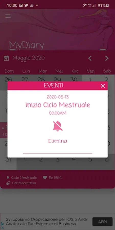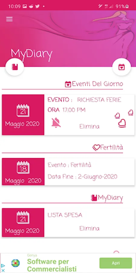 MyDiary allows you to keep your menstrual cycles under control by showing you the periods of fertility and the regularity of your menstrual cycle. It also allows you to enter notes for each day of the month with any reminders.