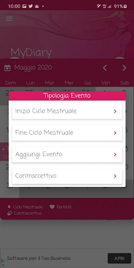 Also, if you use contraceptives, My Diary reminds you when you need to take them.