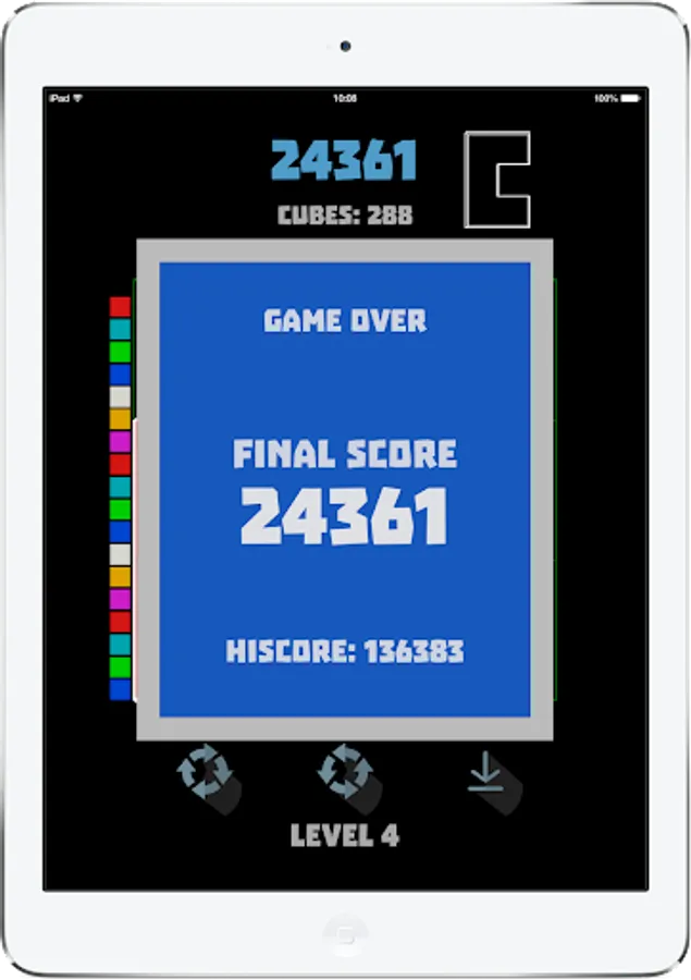 There is a glass. The glass size is 3x3x18. Pentamino 3D blocks drop into 3D glass. You can shift, turn, roll, drop the blocks by touching the mobile screen. All filled layers of the glass are removed. Level is up - speed is up. Try to keep the game as crazy as possible.