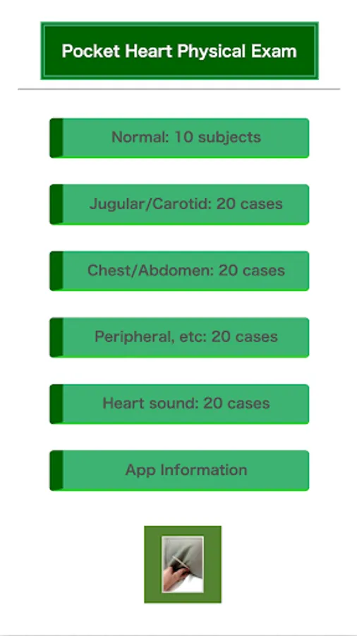 This app is designed to help less experienced staff learn cardiovascular physical examinations. Videos, images, and sounds, followed by simple interpretations, are presented like flash cards. I would be happy if you find the content to be attractive and practical.
